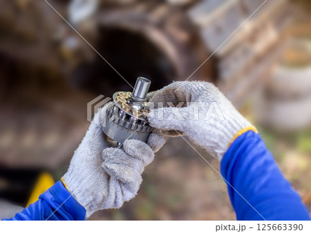 The group of pinion gear spare parts.
