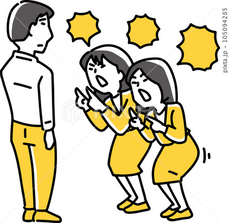 動漫風格的插畫,描繪了一個憤怒的女人指著別人。