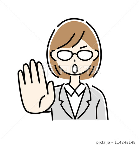 負面情況,如售罄、不可能或反對:以禁止進入標誌和麵無表情的女人為代表