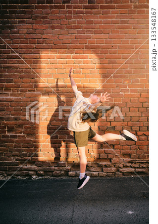 Young girl jumping, celebrating joy and freedom