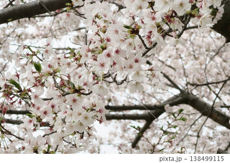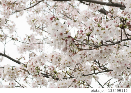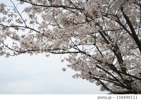 日本埼玉縣蓮田市附近的舊荒川河床春天盛開的染井吉野(櫻花)花