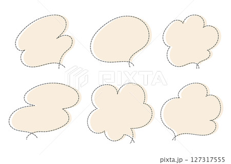 一組粉紅色和膚色的彩色雲形氣泡。右下角有一個對話泡泡尾巴。對話泡泡內的白色虛線