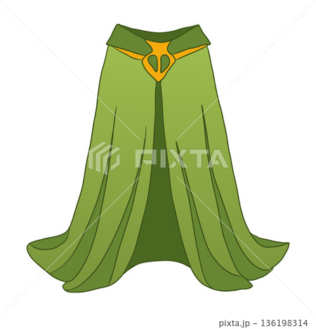 Green magic cloak in flat design. Flowing mantle for carnival costume. Vector illustration isolated.