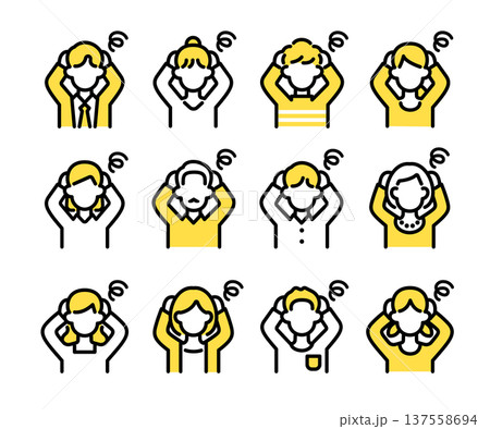 一群年輕男女/情侶抱著頭擺出困擾的姿勢【人物向量圖素材】