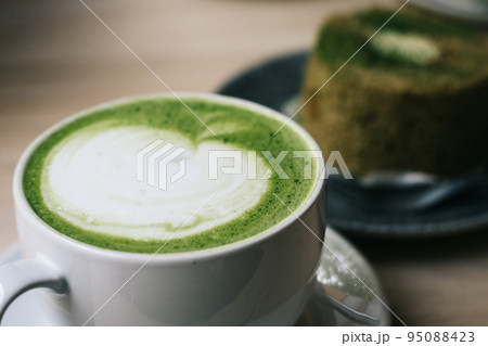享用日式甜點抹茶捲蛋糕的下午茶時間