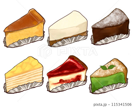 三種抹茶蛋糕的插圖集(抹茶甜點 18)