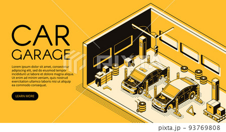Car repair garage service vector isometric halftone