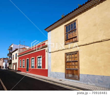 Colorful buildings in San Cristobal de La Laguna old town, Tenerife, Spain.