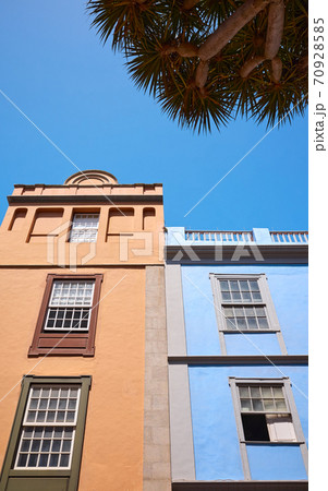 Colorful facade of a building in San Cristobal de La Laguna, Tenerife, Spain.