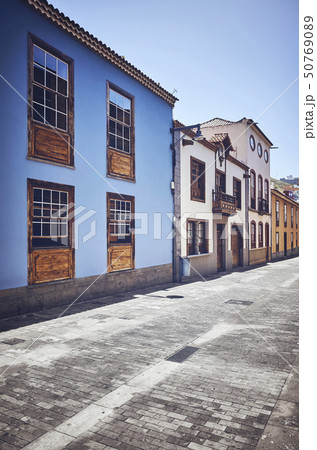 Retro toned picture of San Cristobal de La Laguna old town, Tenerife, Spain.