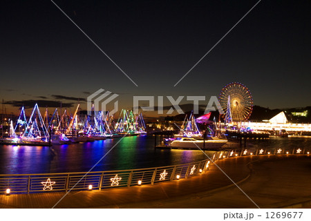 蒲郡市拉古納碼頭的遊艇燈光秀
