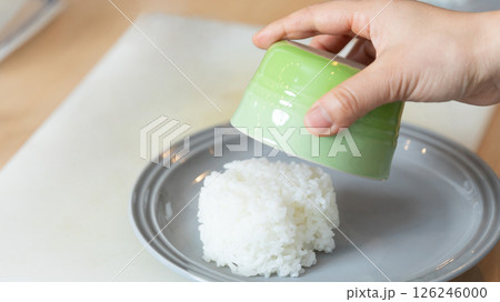 將米飯擺入盤中(庫存照片)