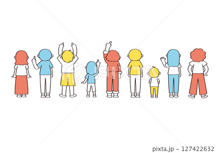 婦女揮手問候、見面、告別、簡單的線條畫插圖