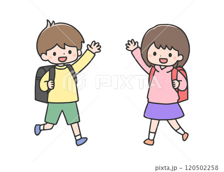 身穿水手服的少女。身穿夏季校服的男女學生。向量插圖素材