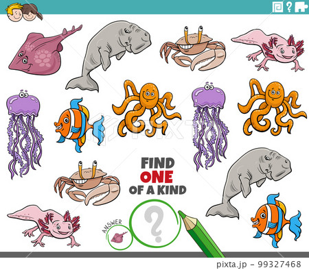 one of a kind task with funny cartoon marine animals