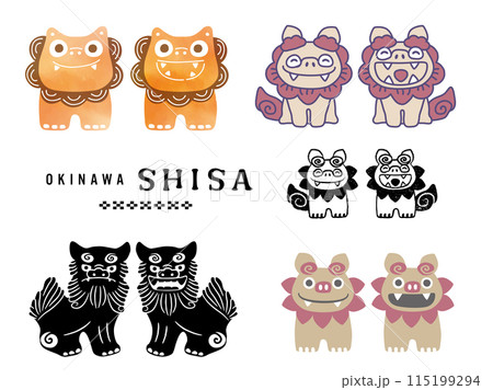 沖繩縣的護身符 Shisa 和 Ishiganto 的圖像插圖