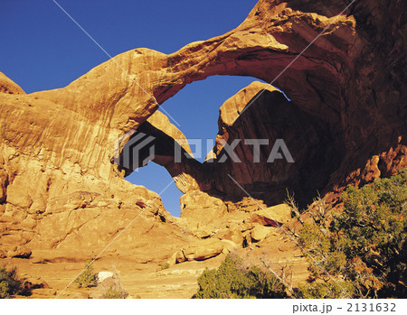 Double Arch sandstone rock formation in Arches National Park, Utah, USA