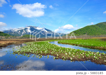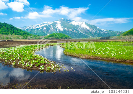 尾瀨的典型景觀,在尾瀨原盛開的臭鼬白菜
