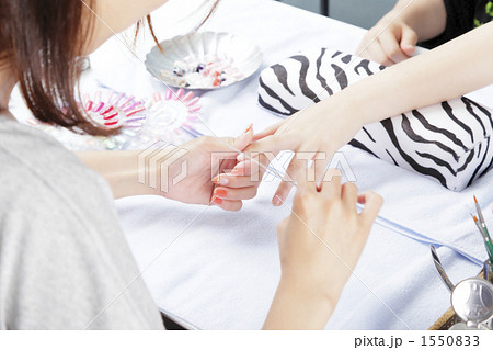 美甲沙龍的美甲師打磨和接受治療的日本女性