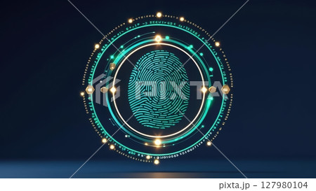 Futuristic digital fingerprint scanner biometric identification technology with glowing circular interface and data security concept for authentication and access control