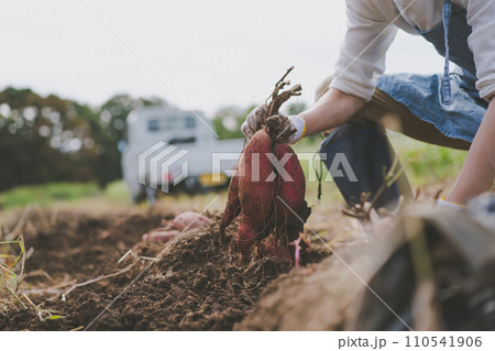 用挖薯機收穫新鮮的紅薯,吃帶著泥土的紅薯真有趣。
