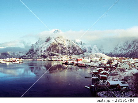 snow in Reine Village, Lofoten Islands, Norway