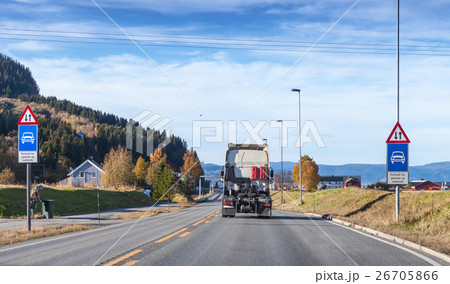 Rural Norwegian road goes near rocks