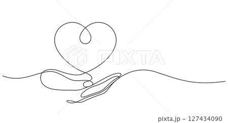donation concept, human hand care and support heart shape one line