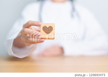Doctor hand holding heart shape block in hospital. love, donor, world heart day, world health day, CSR donation and Insurance concepts