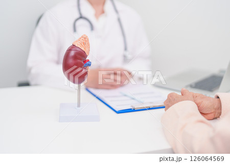 Elderly Patient consultation with doctor for Kidney disease, Urinary system and Stones, Cancer, world kidney day, Chronic kidney, Urology, Nephritis, Renal, Transplant and medical healthcare concept