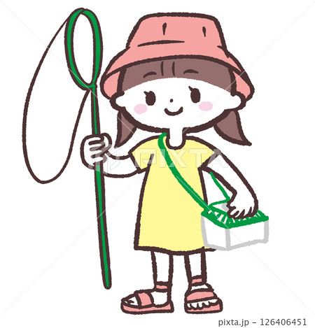 夏天_開朗的男孩捉蟲子插畫【全身】