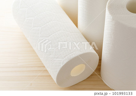 Universal white fabric napkins for cleaning in a roll. Bobbin with napkins for dispenser. Selective focus