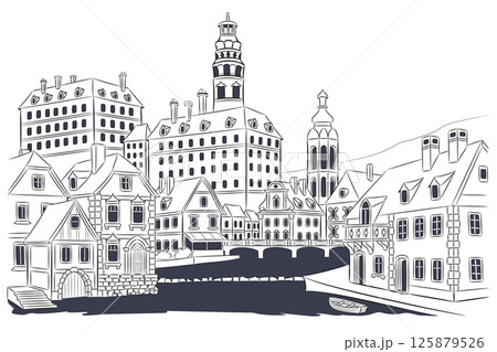 Illustration of the old town of Cesky Krumlov, Czech Republic