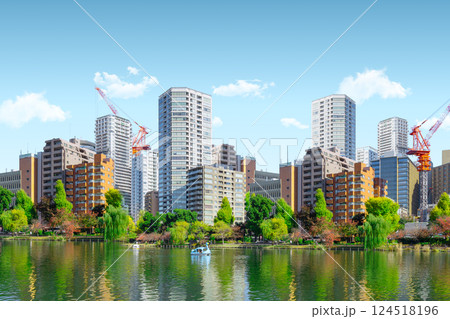 Modern metro city building around clean canal river, Environment eco friendly urban in Japan.