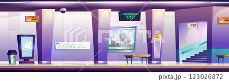 Destroyed and abandoned railway underground station, vector destroyed subway station metro train, platform, metropolitan