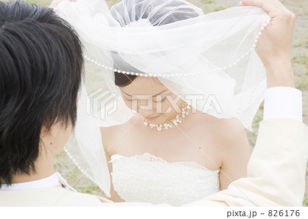 新郎在婚禮上掀起新娘的面紗(面紗向上)