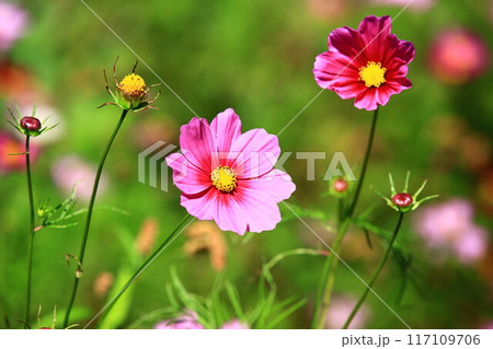 綻放的大波斯菊花(格桑花,秋英,波斯菊,秋櫻,笤帚梅,掃帚梅,大春車菊,大春菊)