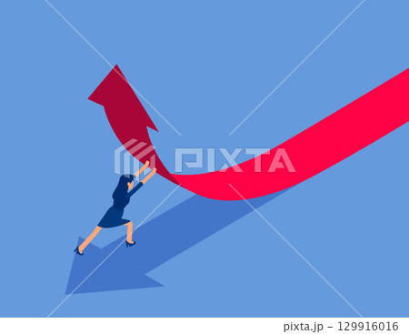 Businesswoman changes the direction of the arrow. Flat isometric vector concept