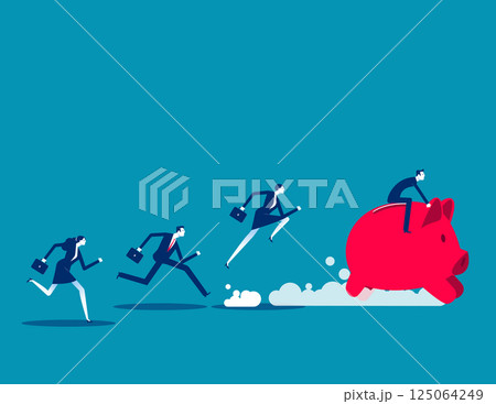 Leader ride piggy bank to competition for business. Investor running to success concept