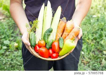 Hydroponics, Asian man holding vegetable basket standing on a farm, growing commercial organic vegetables, small business entrepreneurs. Organic vegetables growing concept