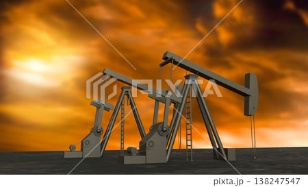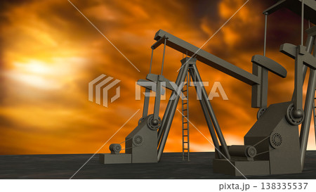 Oil Pump Jack At Sunset Petroleum Industry Energy Concept 3d render.