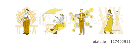 各種職業的探險家插畫:大師、冒險家、創業家、藝人