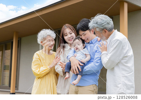 圖:父母和孩子在房屋製造商的開放日活動中手持氣球聚集在一起