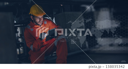 Professional engineer on site service with modern advance digital technology assistant worldwide