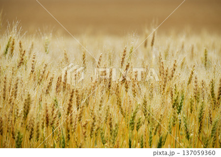 The Golden Fields of Grain Stretch Extensively Across the Beautiful Countryside Landscape
