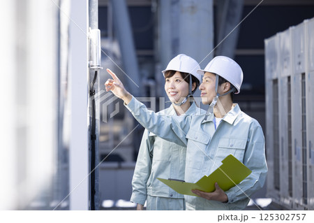 女工檢查室外機