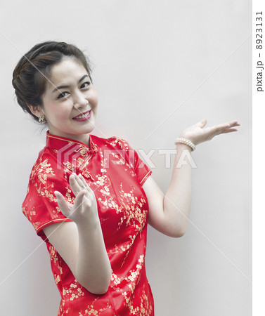 Asian Chinese woman in Traditional Chinese Cheongsam gesturing