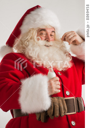 Santa Claus drinking milk from bottle