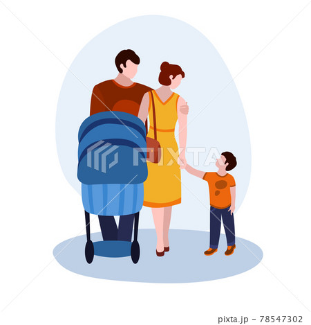 Dad, Mom, Baby And Stroller vector illustration from family collection. Flat cartoon illustration isolated on white