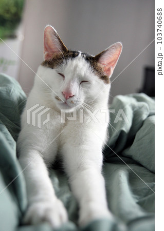 Daily concept of Japanese Bobtail cat living at home